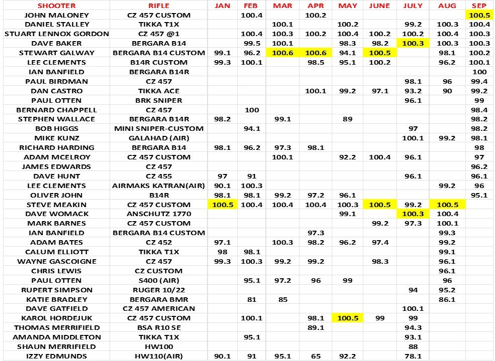 - Shooter name,rifle/pistol & discipline must be clearly entered onto each scorecard.