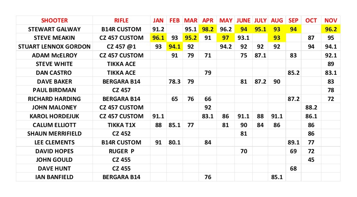 - Shooter name,rifle/pistol & discipline must be clearly entered onto each scorecard