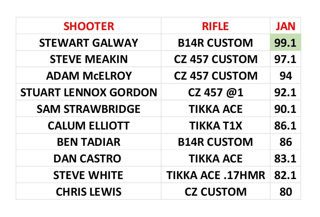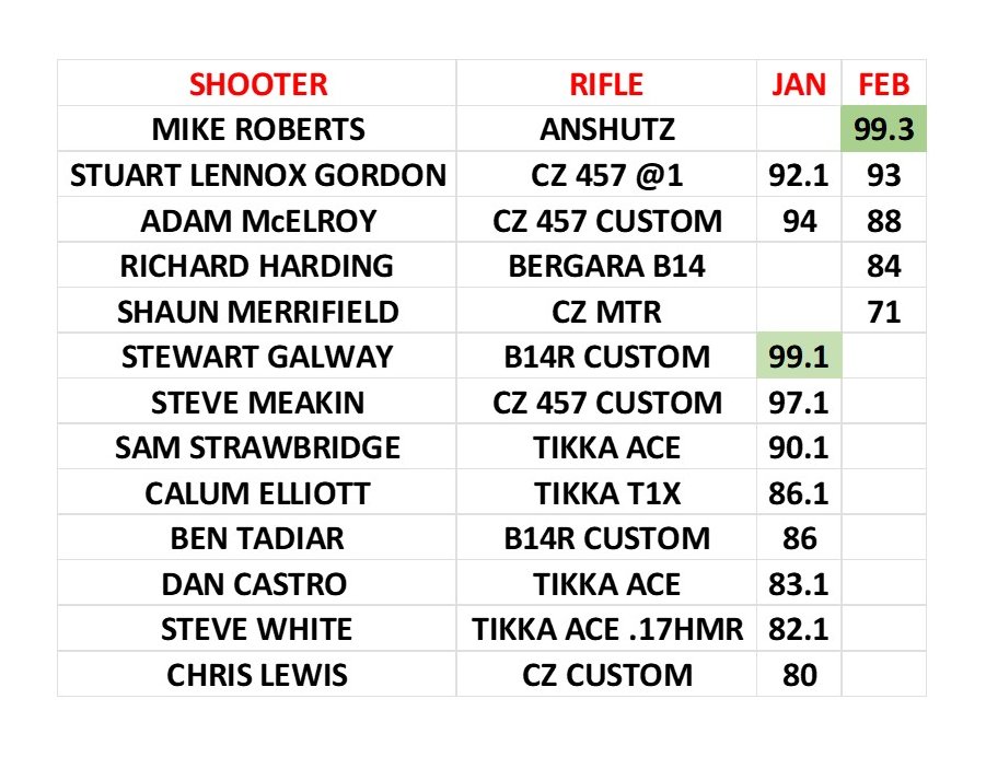 - 1 scorecard per week / per discipline / per firearm.