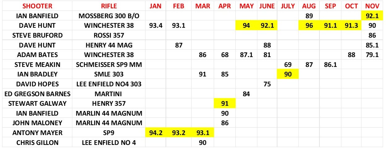 - Shooter name,rifle/pistol & discipline must be clearly entered onto each scorecard
