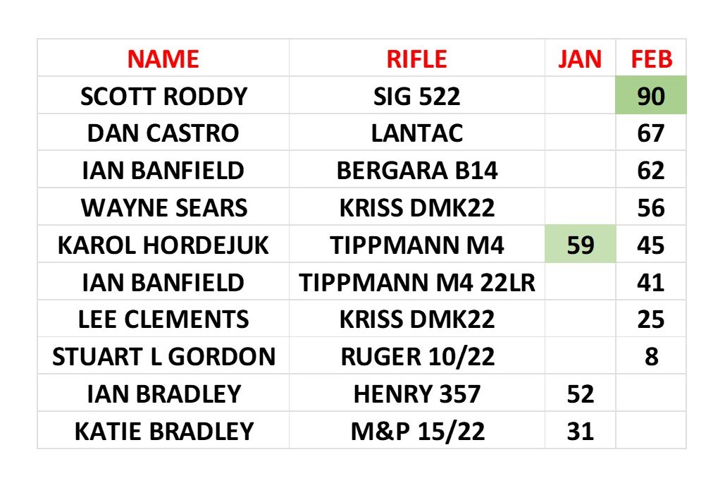 - Shooter name,rifle/pistol & discipline must be clearly entered onto each scorecard.
