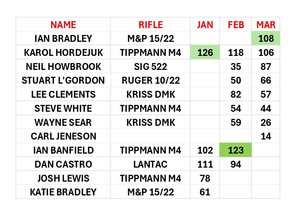 8 - .22 Semi-Auto 10 - 50yd Unsupported (any Optic)