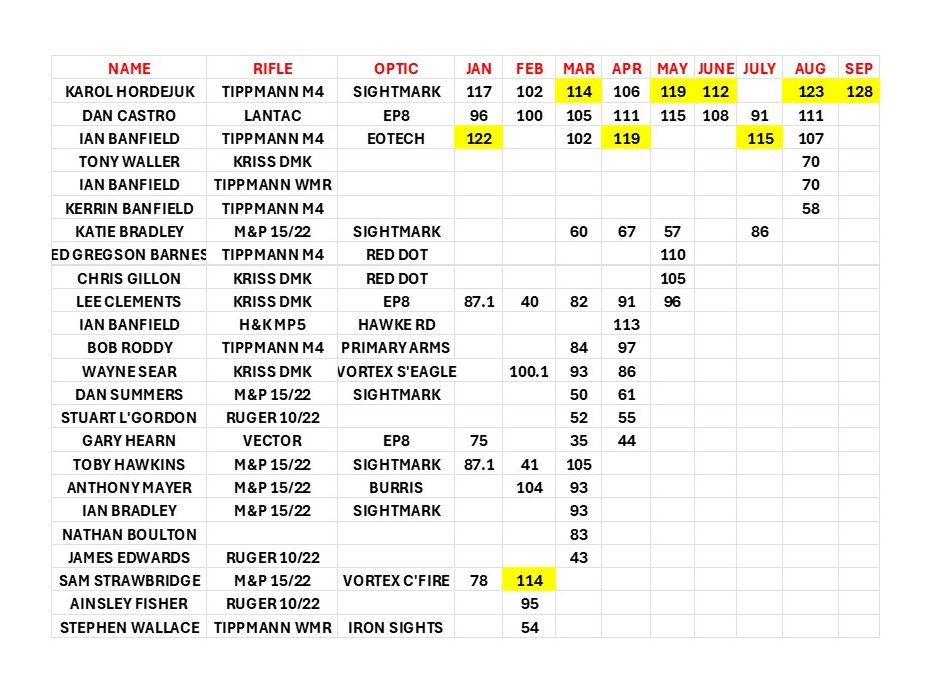 - Monthly change to course of fire.