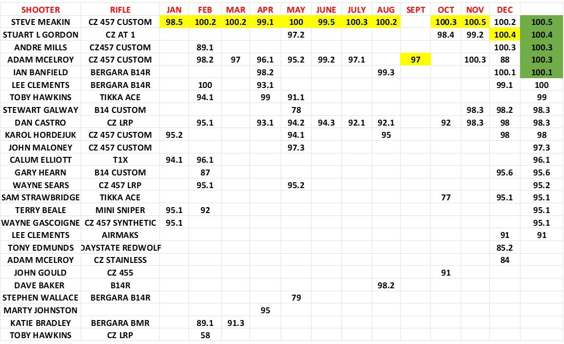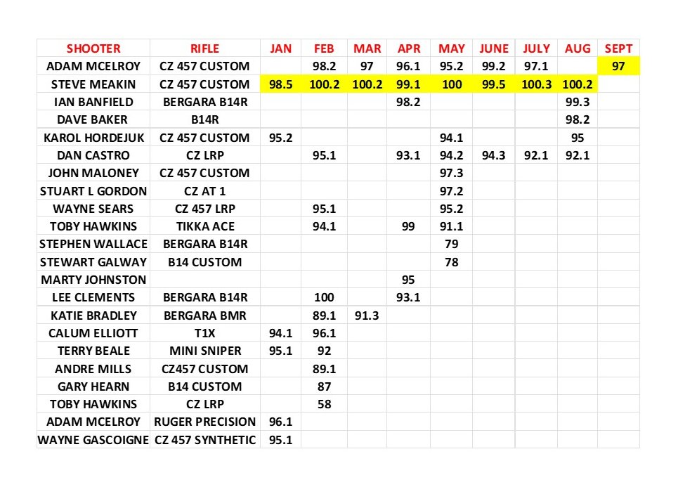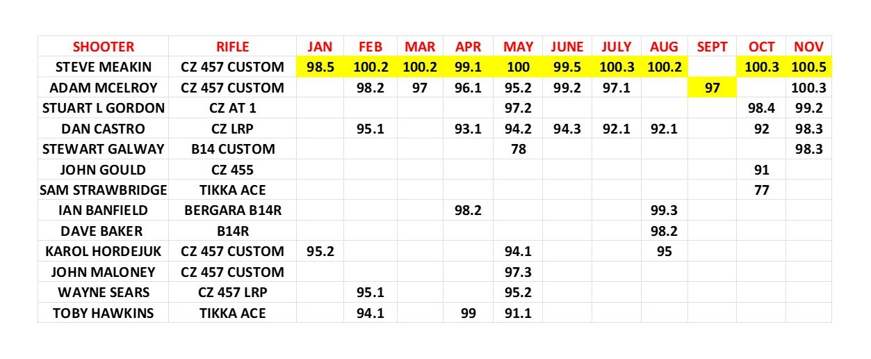 - Shooter name,rifle & discipline must be clearly entered onto each scorecard.