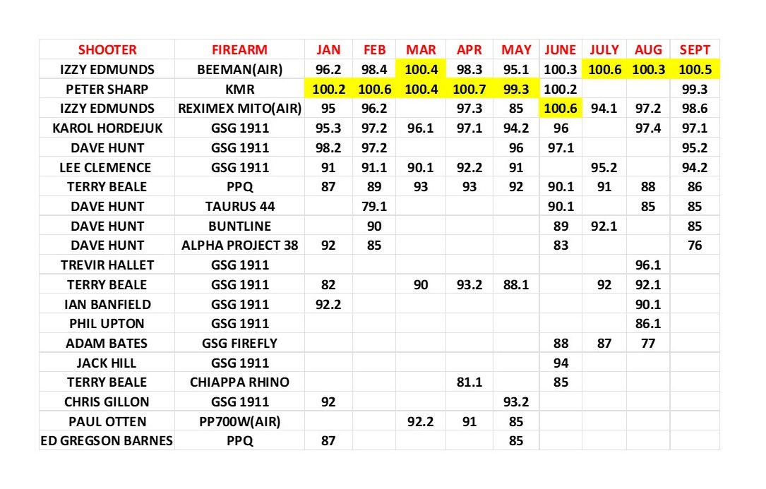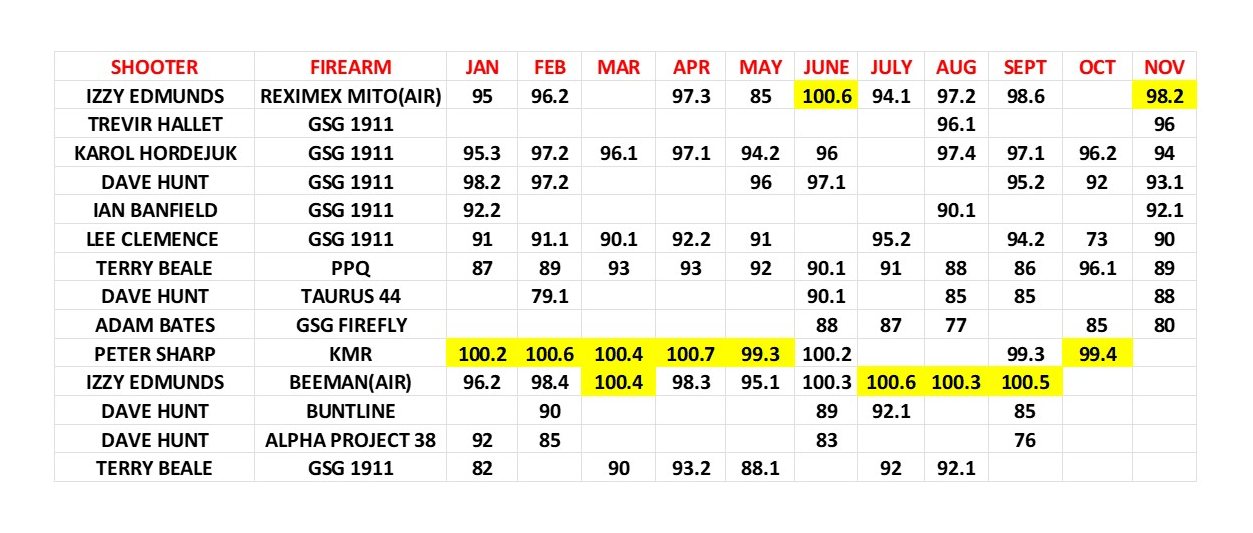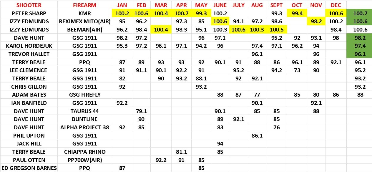 - Shooter name, pistol & discipline must be clearly entered onto each scorecard.