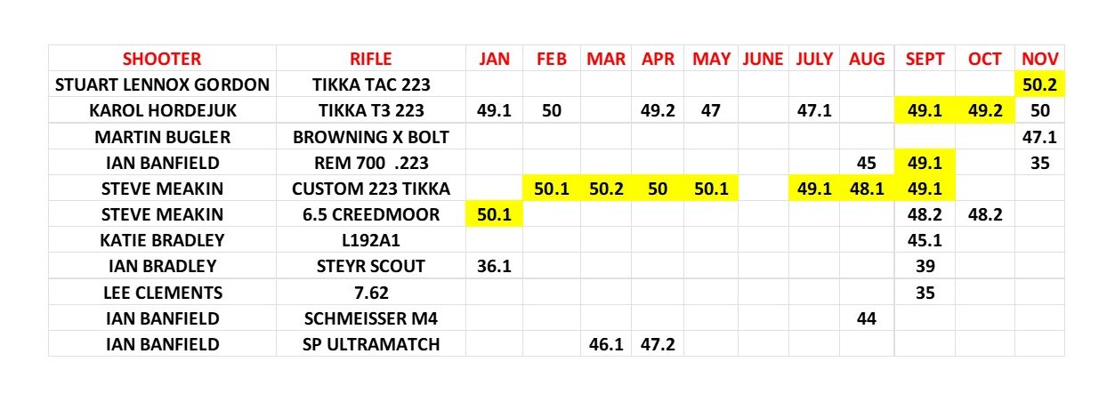 - Shooter name,rifle discipline must be clearly entered onto each scorecard.