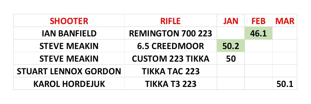 - Shooter name,rifle discipline must be clearly entered onto each scorecard.