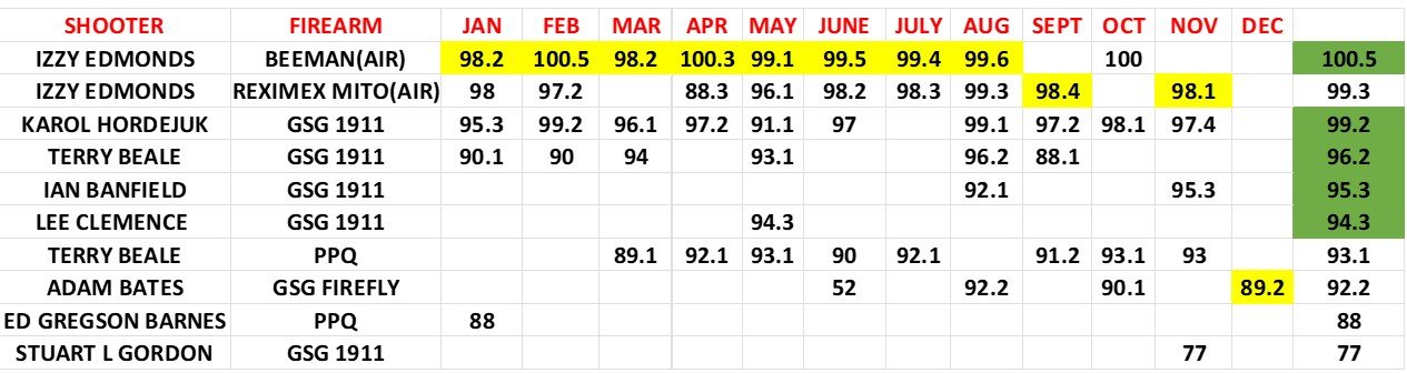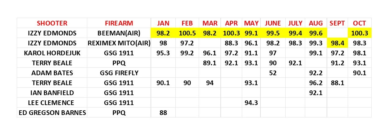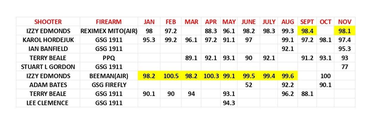 - Shooter name, pistol & discipline must be clearly entered onto each scorecard.