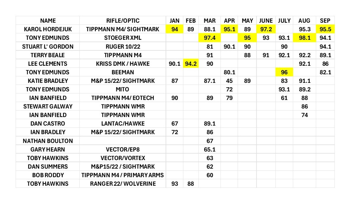 8 - .22 Semi-Auto 10 - 50yd Unsupported (any Optic)