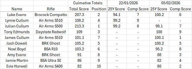 29/01/2026 & 05/02/2026 Scores