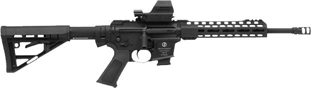 Dropped forged 7075 T6 Aluminium upper and lower. Match grade barrels (1-10 Twist Rate) - will accept direct thread moderator. Screw cut at 14x1. 3 Prong muzzle break collapsible/ adjustable stock. 1 x 10 rd Glock Magazines. Free floating M-loc handguard. 2 stage mil spec trigger with pin retainers. MBUS style flip up sights. Ambidextrous 45/90 degree safety. Includes cleaning kit and lockable hardcase.