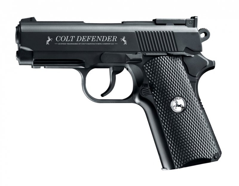 The CO? capsule is held in the frame and can be changed quickly. The manual safety prevents accidental firing. A Weaver rail for additional accessories is attached below the muzzle. The frame and slide are made of metal, giving the Colt Defender a realistic weight and excellent feel.